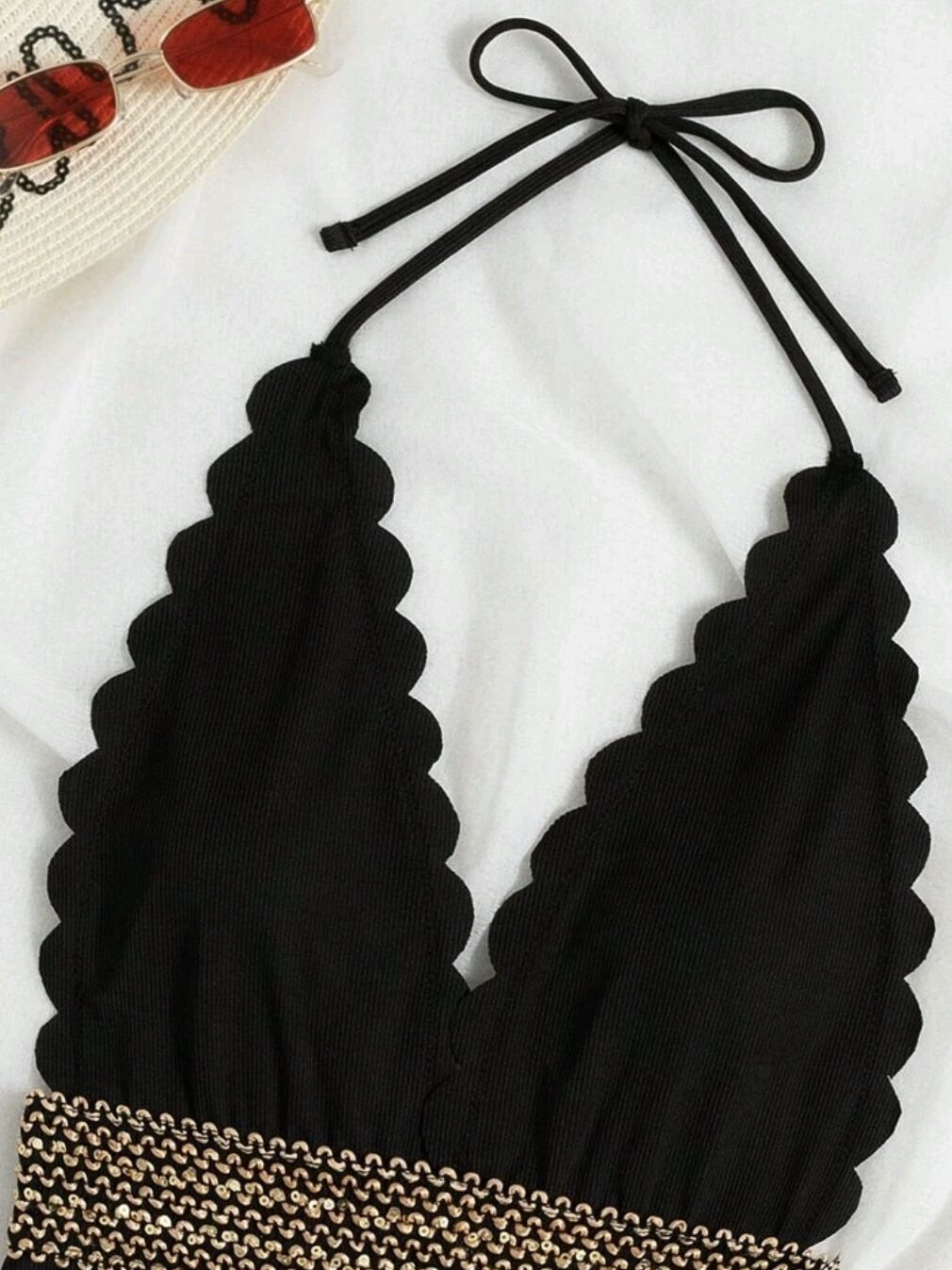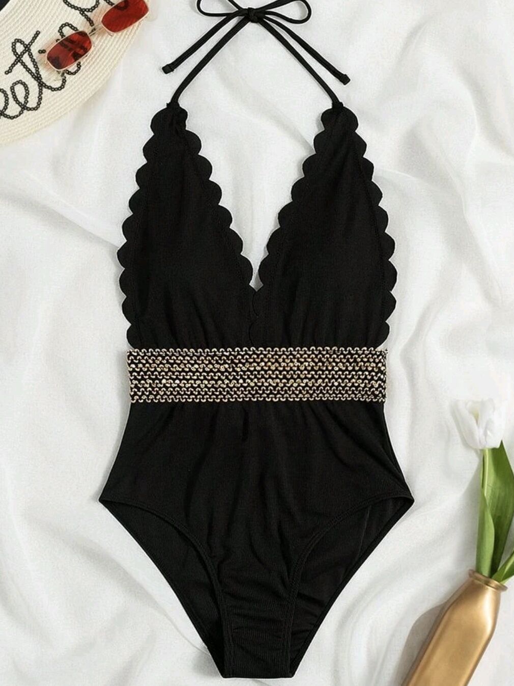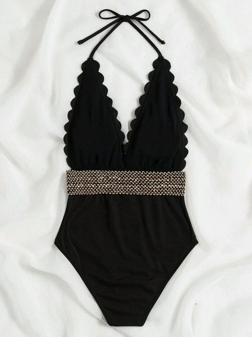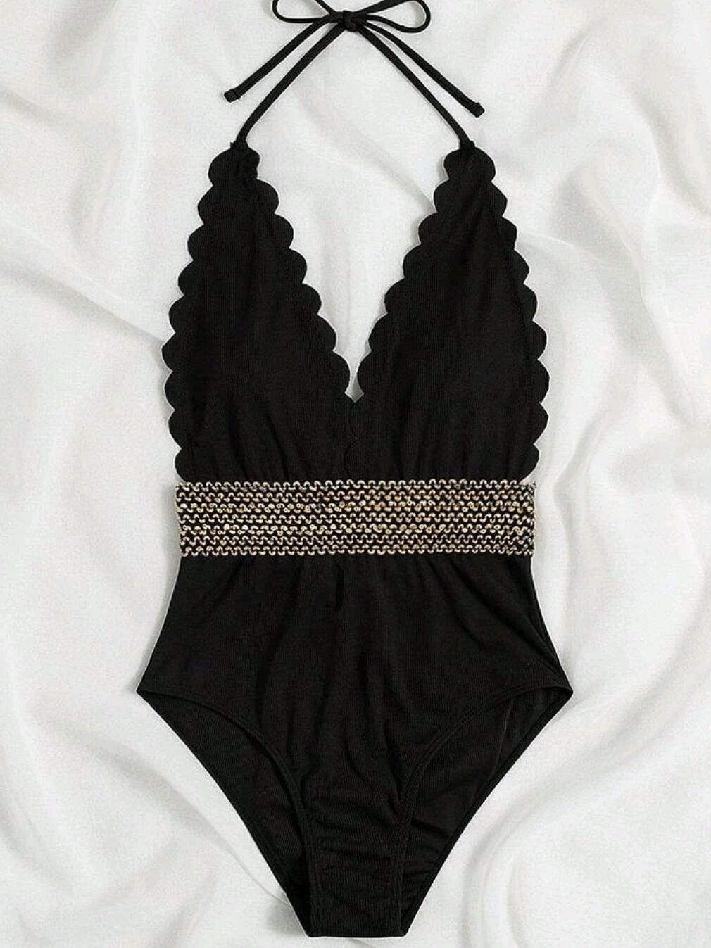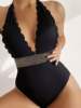 2025 Black One Piece Swimsuit Solid Halter Swimwear Women Bathing Suit Female Padded Monokini Swimming Summer Beachwear Bodysuit