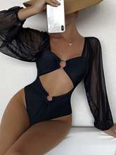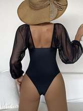 2025 Black Swimsuit One Piece Solid Long Sleeve Swimwear Women Bathing Suit Female Padded Swimming Summer Beachwear Bodysuit