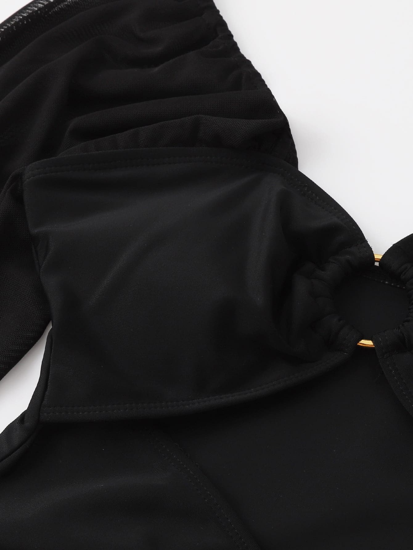 2025 Black Swimsuit One Piece Solid Long Sleeve Swimwear Women Bathing Suit Female Padded Swimming Summer Beachwear Bodysuit