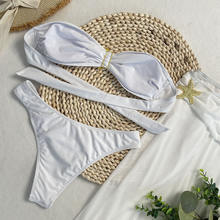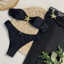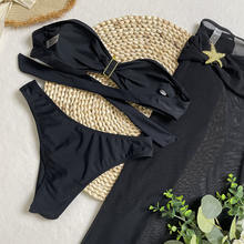 2025 3-piece Swimsuit Strapless Solid Bikini Set with Gauzy Skirt Cover Up Women’s Bathing Suit Beachwear