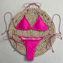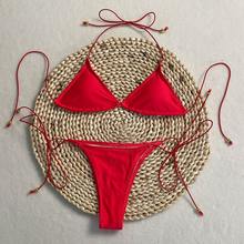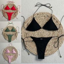 2025 Adjustable Women’s Bathing Suit Beachwear Solid Rope Two-Piece Swimwear Lace-up Halter Split Bikini Set