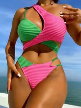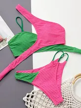 2025 Asymmetric Splicing Ribbed Bikini Female Swimsuit Women Swimwear Two-pieces Bikini Set Brazilian Bather Bathing Suit Swim