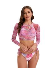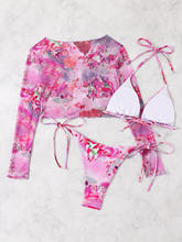 2025 Bikini Three-piece Set Women Thong Print Swimsuit Low Waist Summer Mesh Blouse Swimming Pool Bikini Set Brazil Set