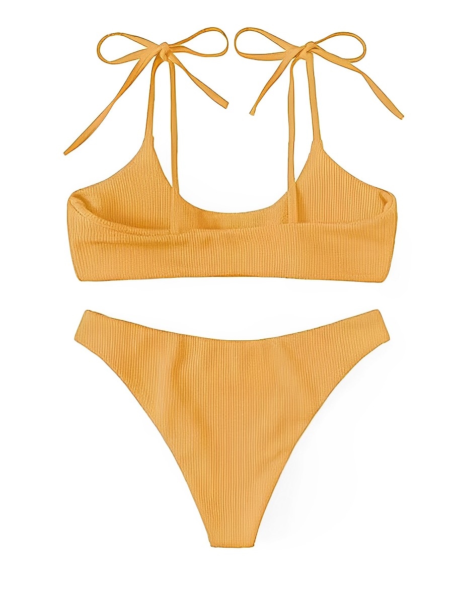 2025 Brazilian Ribbed Bikini Solid Strappy Swimsuit Women Padded Swimwear Female Bathers Bathing Swimming Swim Suit Beachwear