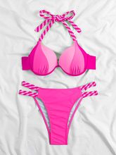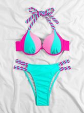 2025 Colorblock Halter Push Up Bikini Halter Swimsuit Women Swimwear Female Bathers Bathing Swimming Swim Suit Beachwear