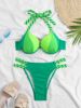 2025 Colorblock Halter Push Up Bikini Halter Swimsuit Women Swimwear Female Bathers Bathing Swimming Swim Suit Beachwear
