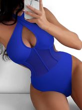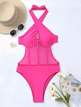 2025 Contrast Mesh Cut Out Halter Swimsuit One Piece Solid Swimwear Women Push Up Bathing Swimming Swim Suit Female Beach Wear
