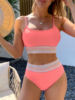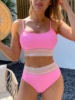 2025 Contrast Trim High Waist Bikini Swimsuit Women Solid Strape Swimwear Female Padded Bathing Suit Swimming Beachwear