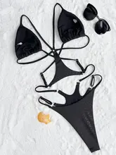 2025 Criss Cross Back Thong Women Swimwear One Piece Swimsuit Female High Cut Out Monokini Bather Bathing Suit Swim Lady