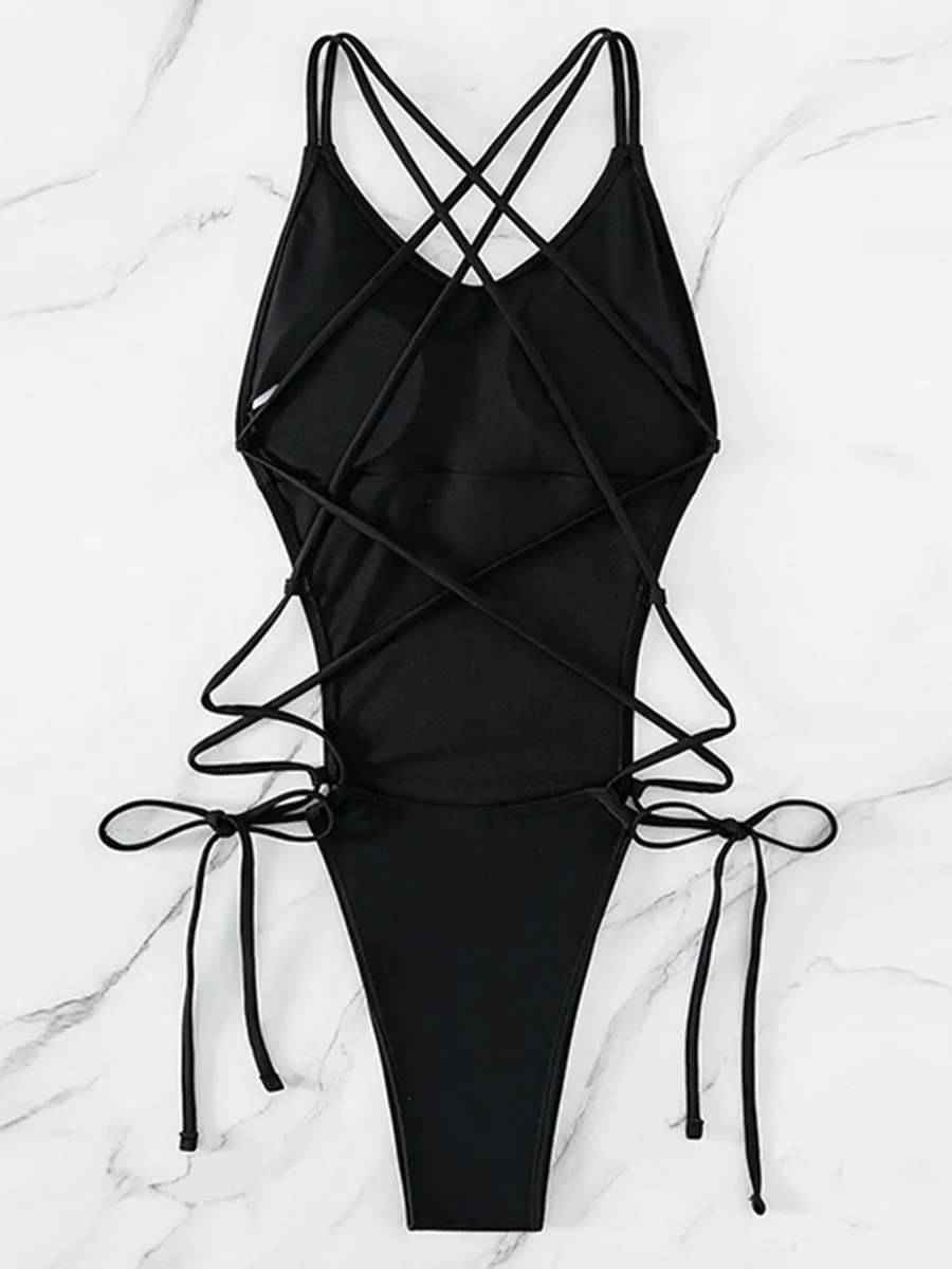 2025 Criss Cross Backless Female Swimwear One Piece Swimsuit Women Monokini High Leg Cut Bather Bathing Suit Swim Beachwear