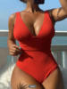 2025 Deep V Neck One Piece Swimsuit Women Solid Swimwear Female Monokini Bathers Bathing Swimming Swim Suit Beachwear
