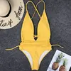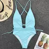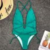 2025 Deep V Neck Wrap Around Female Swimwear One Piece Swimsuit Women Backless Monokini High Cut Bathing Suit Swim Lady