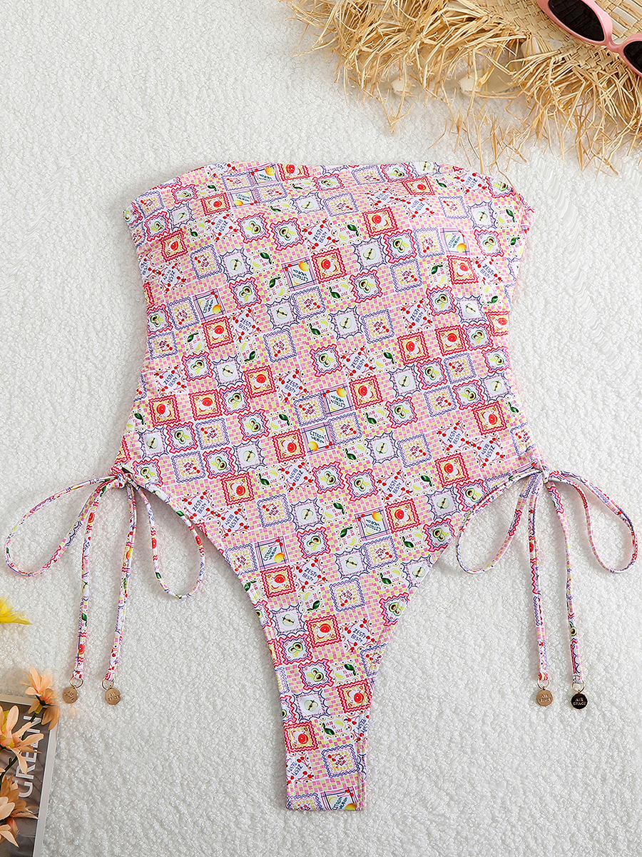 2025 Drawstring High Cut Swimsuit One Piece Printed Swimwear Women Bathers Bathing Swimming Swim Suit Female Beachwear