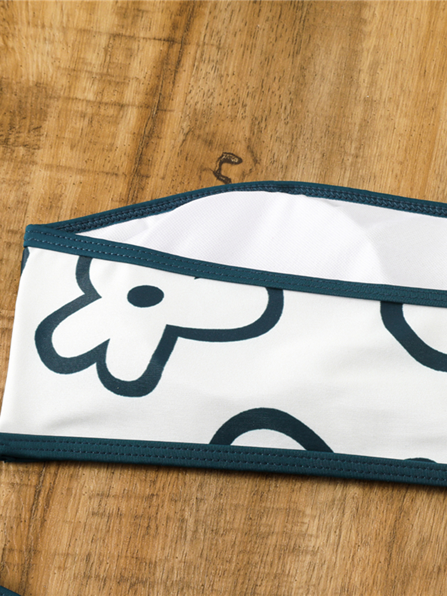 2025 Floral Strapless Bandeau Bikini Thong Swimsuit Women Swimwear Female Bathers Bathing Swimming Swim Suit Beachwear