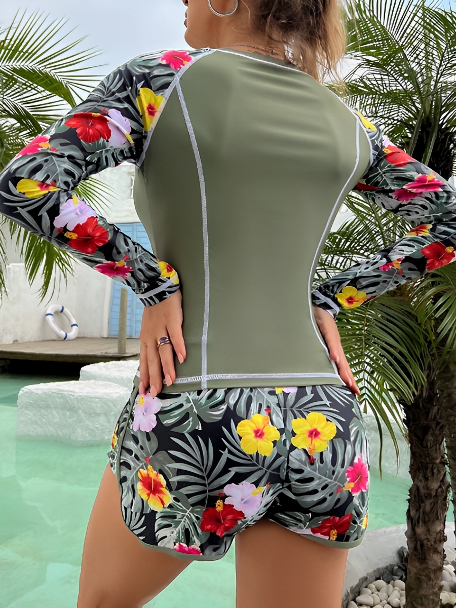 2025 Floral Surf Swimsuit Long Sleeve High Waist Shorts Swimwear Women Two Piece Rashguard Diving Clothes Bathing Swimming Suit