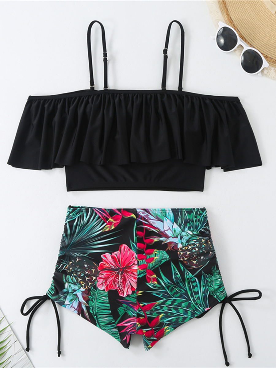 2025 Frill High Waist Shorts Two Piece Bikini Swimsuit Women Swimwear Female Bather Bathing Swimming Swim Suit Beachwear