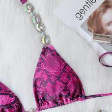 2025 Halter Bikini Set Snake Pattern Rhinestone Lace-up Thong Swimsuit Women’s Bathing Suit Summer Beachwear