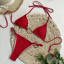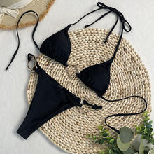 2025 Halter Bikini Set Solid Lace-up Two-Piece Swimwear Women’s Bathing Suit Vacation Beachwear Brazilian