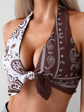 2025 Halter Bikini Tops Printed Bra Padded Swimsuit Women Bowknot Swimwear Female Bather Bathing Swimming Swim Suit Beachwear