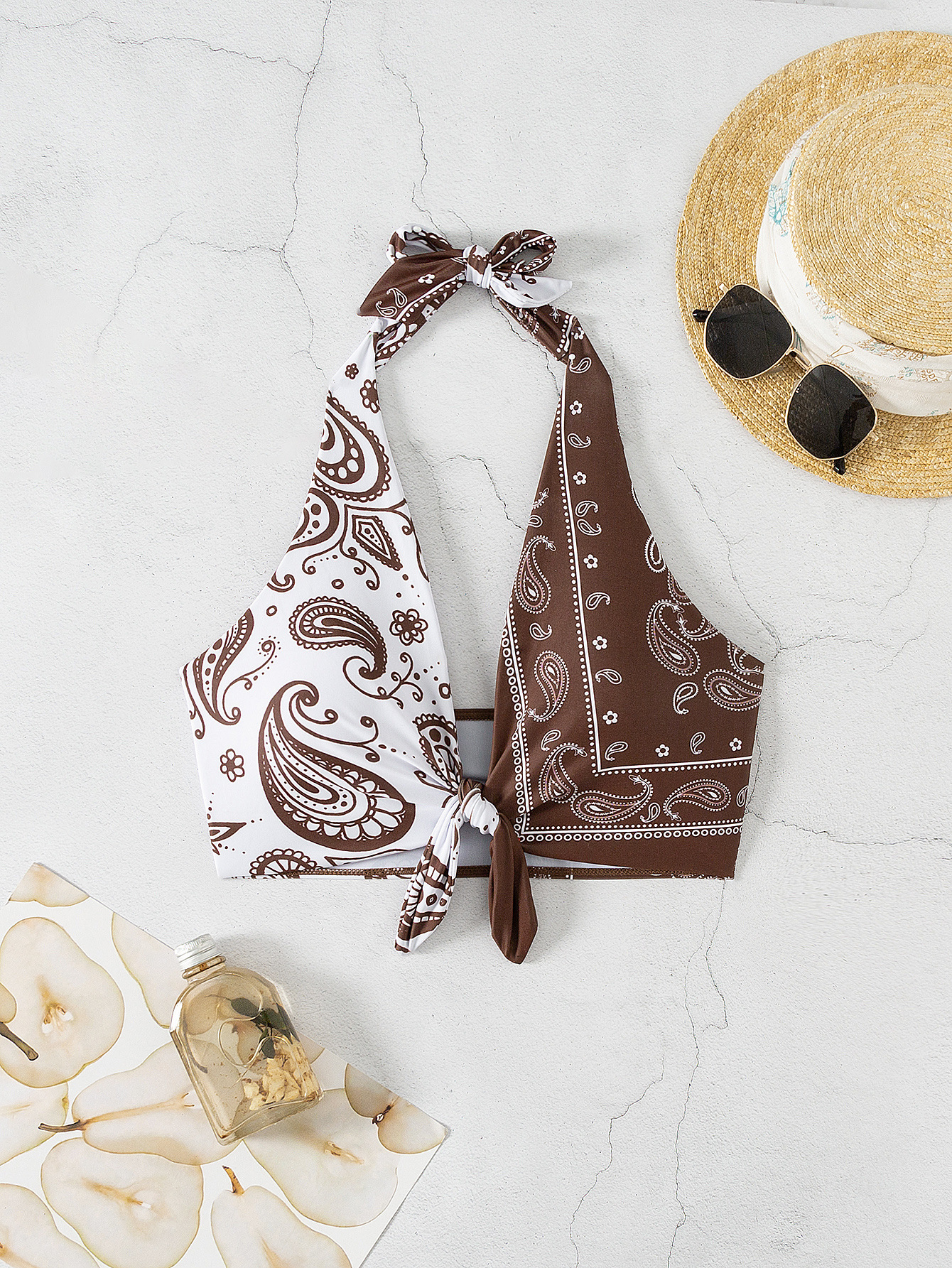 2025 Halter Bikini Tops Printed Bra Padded Swimsuit Women Bowknot Swimwear Female Bather Bathing Swimming Swim Suit Beachwear