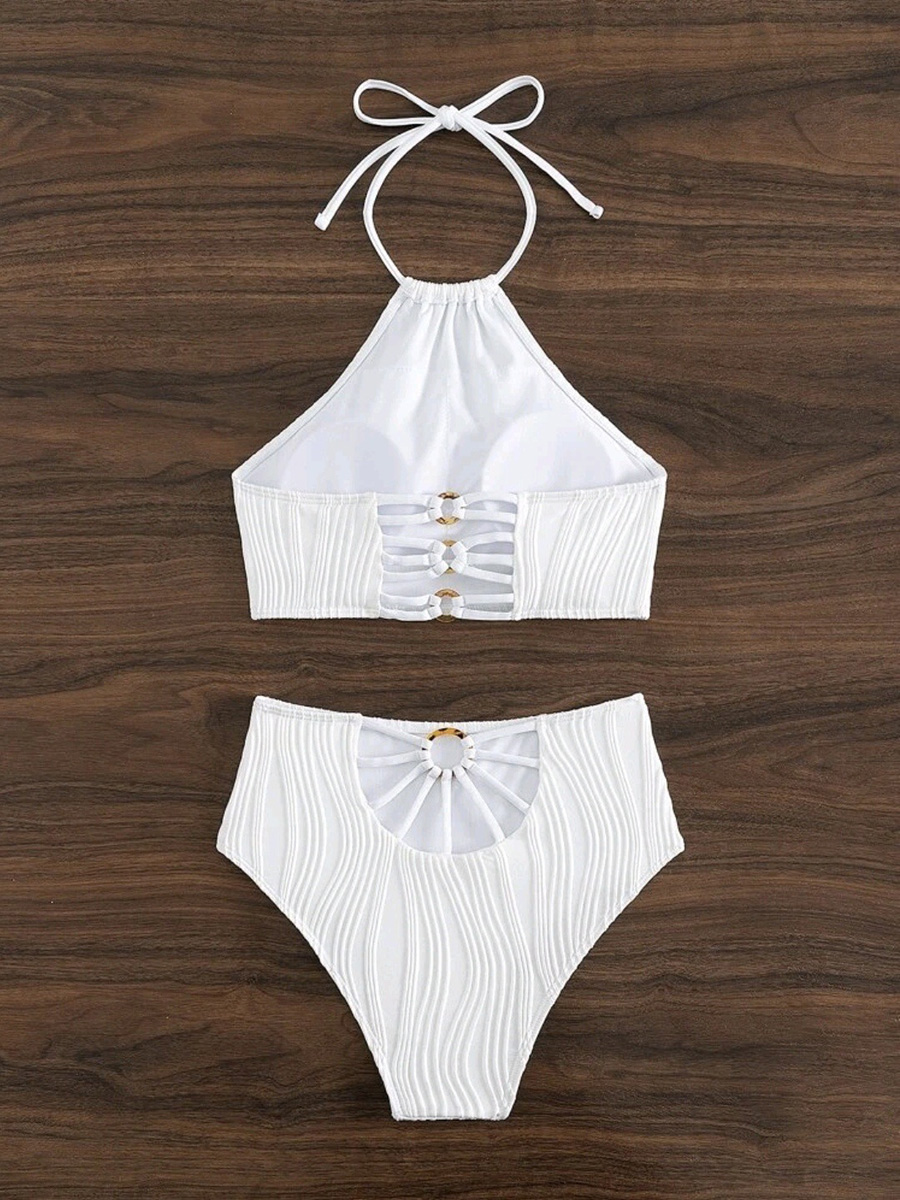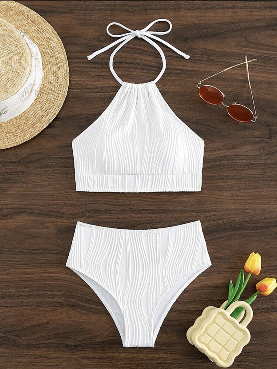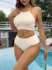 2025 Halter Bikini Women Swimwear Female High Waist Swimsuit Solid Bathers Bathing Swimming Swim Suit Beachwear