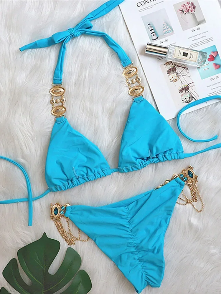 2025 Halter Jewelled Diamond Bikini Women Swimsuit Female Swimwear Two pieces Bikini Set Brazilian Bathing Suit Swim Beach Wear