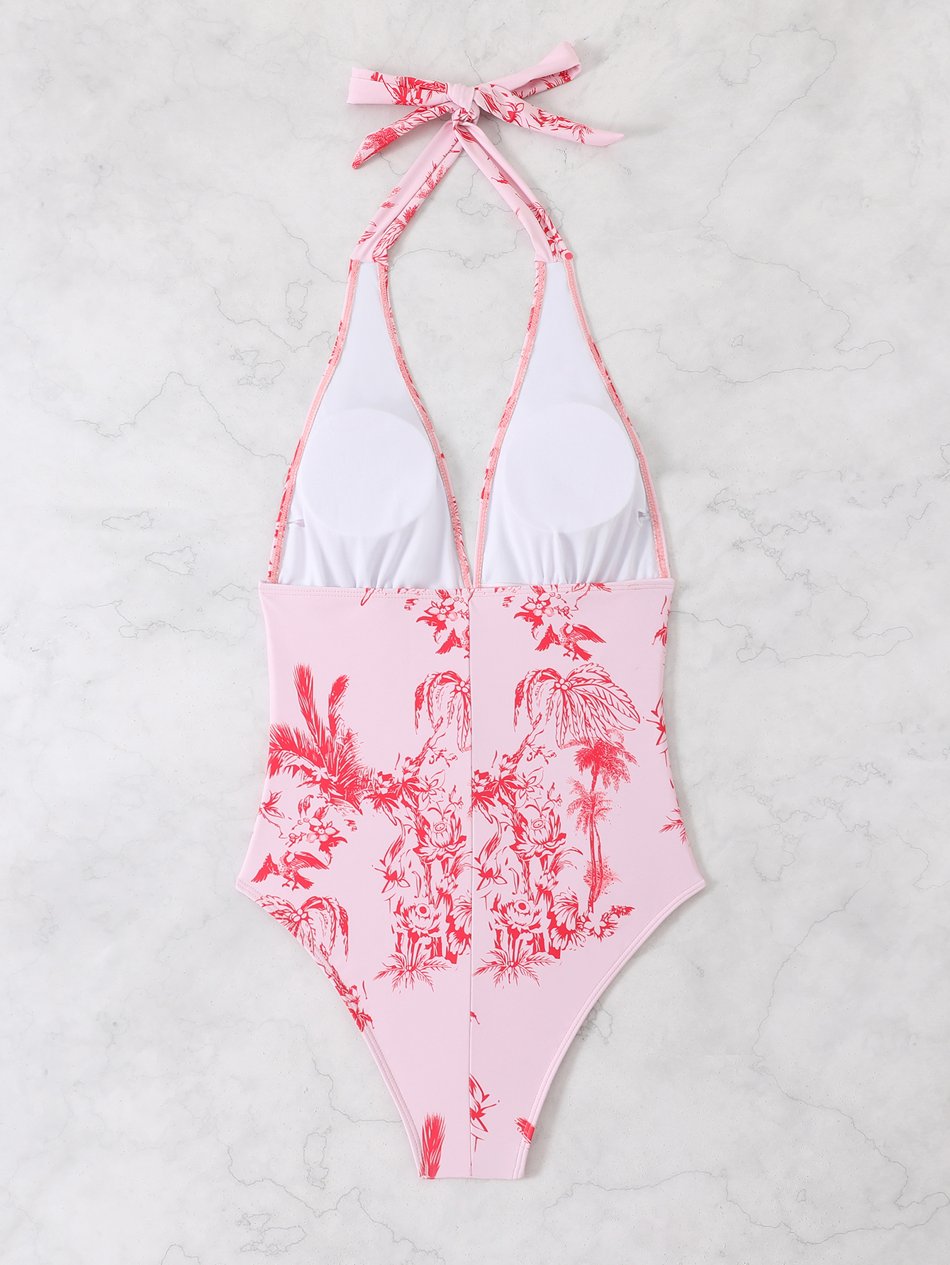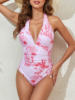 2025 Halter Monokini One Piece Swimsuit Women Printed Backless Swimwear Female Bathers Bathing Swimming Swim Suit Beachwear