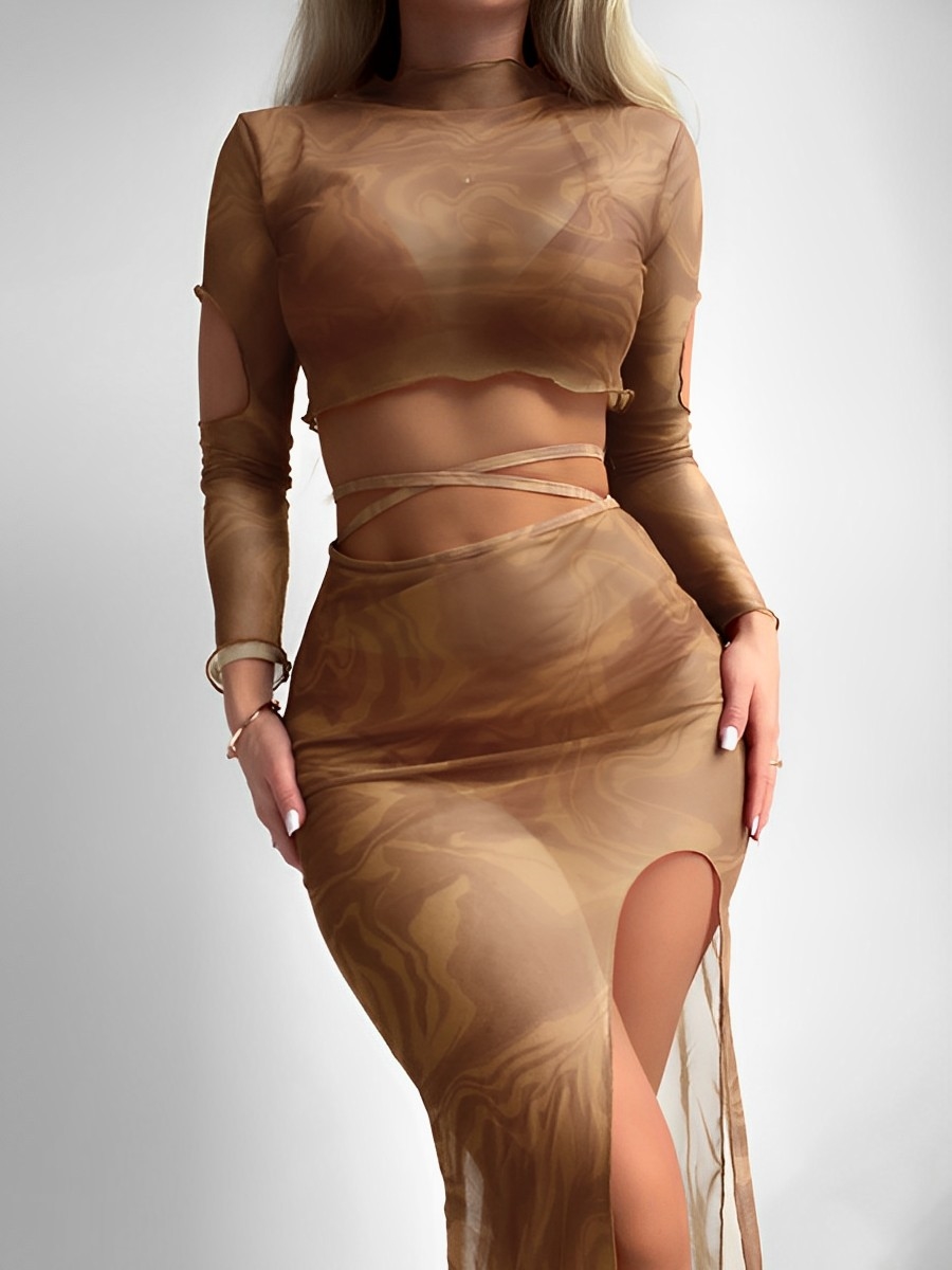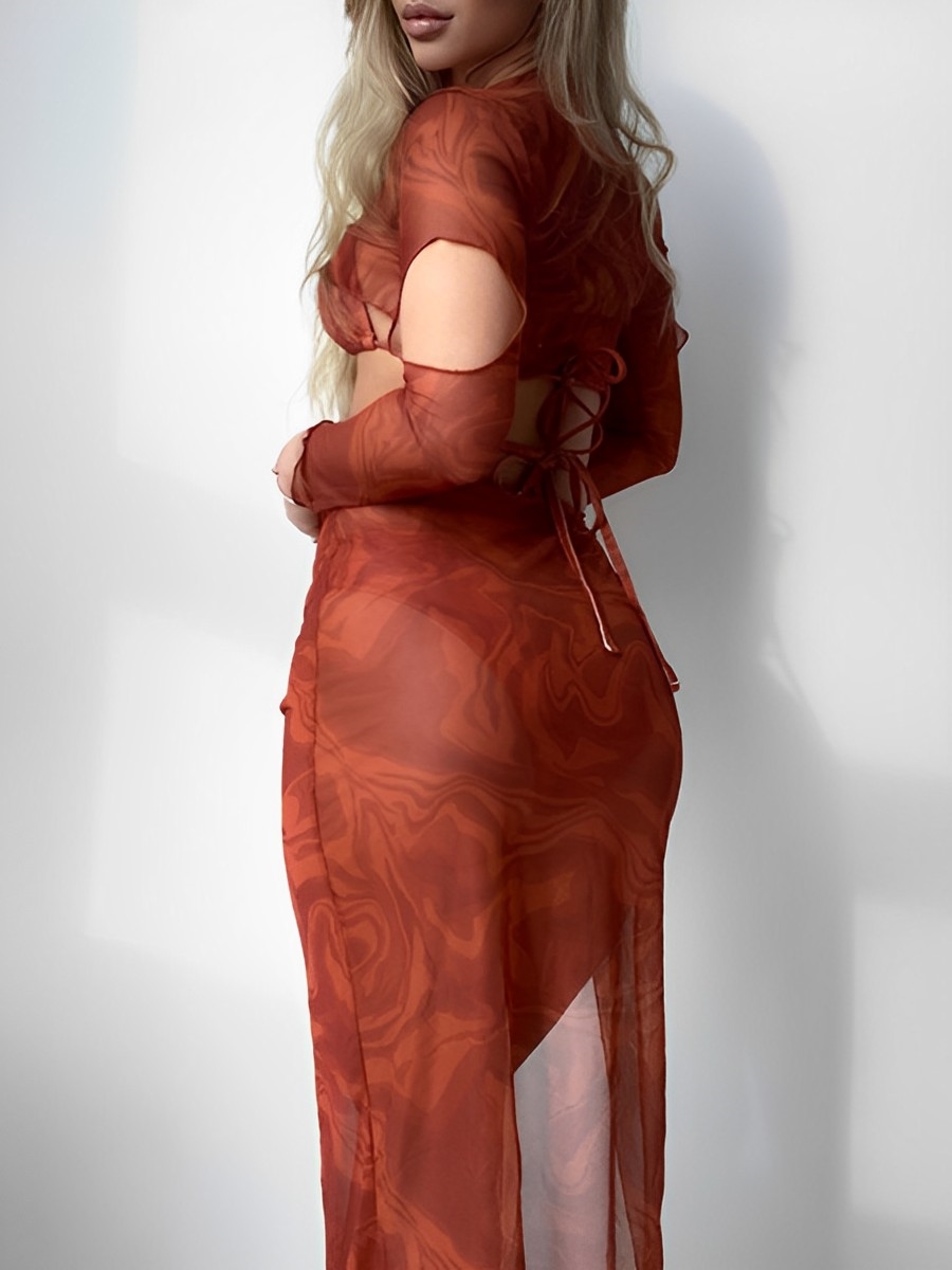 2025 Halter String 4 Piece Vent Long Skirt Bikini Swimsuit Women Swimwear Female Bather Bathing Swimming Swim Suit Beachwear