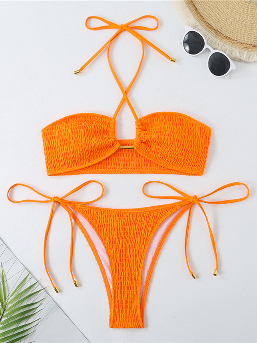 2025 Halter String Bikini Solid Swimsuit Women Swimwear Female Bathers Bathing Swimming Swim Suit Beachwear