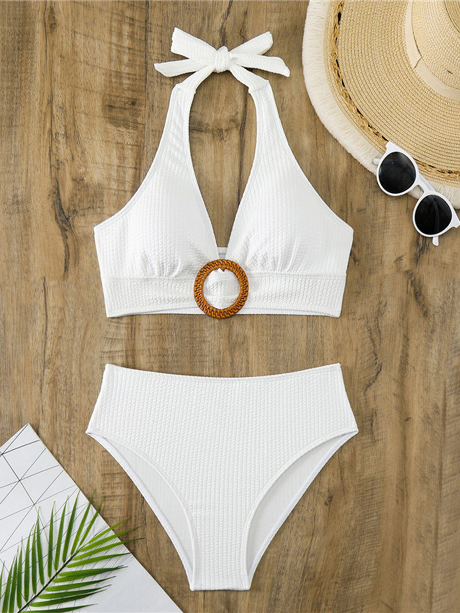 2025 Halter String High Waist Two Piece Bikini Swimsuit Women Swimwear Female Bather Bathing Swimming Swim Suit Beachwear