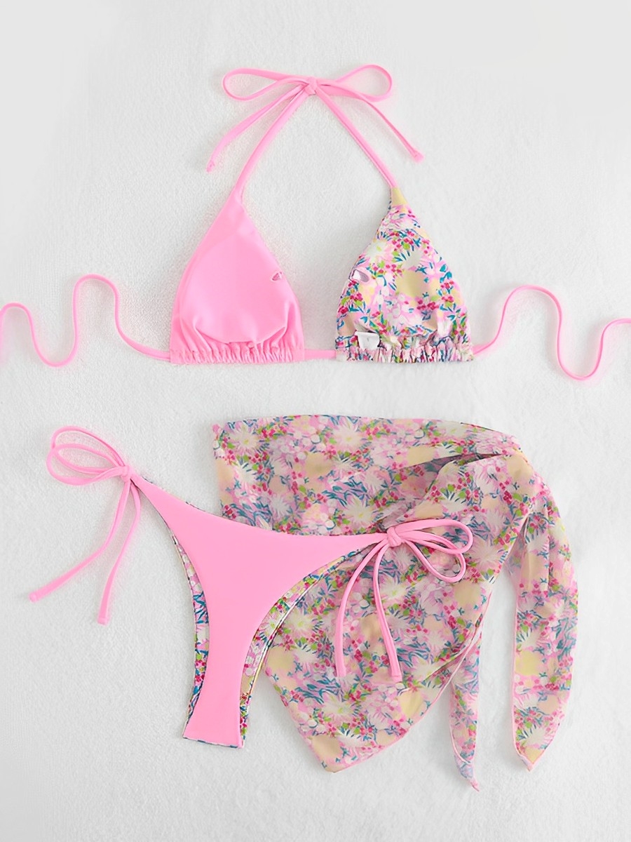 2025 Halter String Triangle Bikini 3 Piece Swimsuit Women Padded Swimwear Female Bathers Bathing Swimming Swim Suit Beachwear