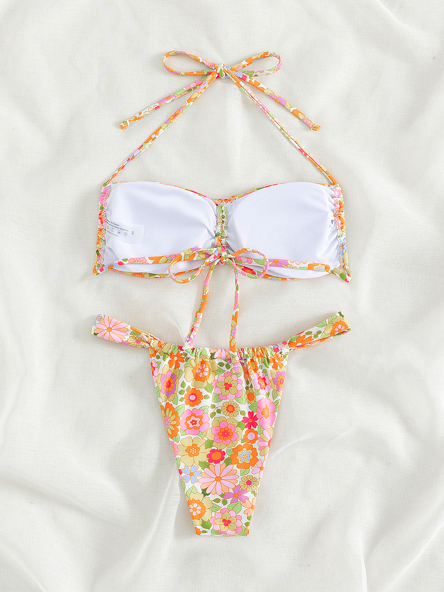 2025 Halter String Two Piece Floral Bikini Swimsuit Women Swimwear Female Bather Bathing Swimming Swim Suit Beachwear
