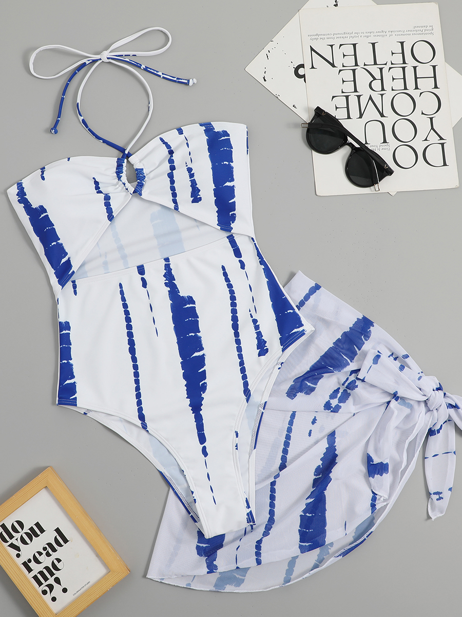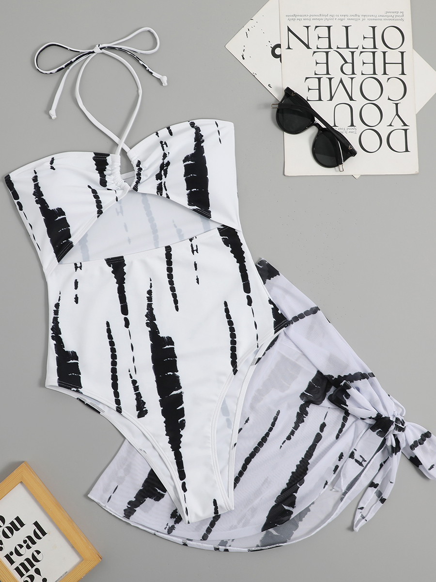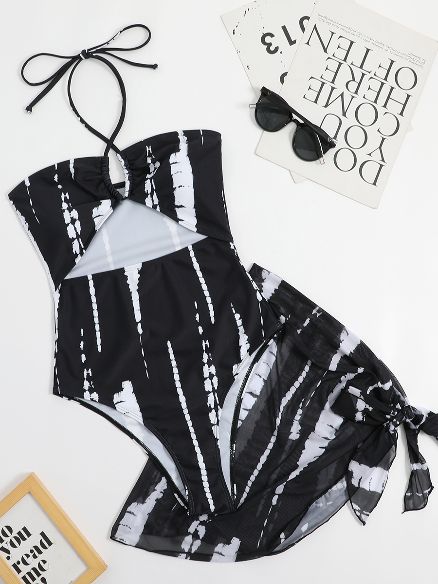 2025 Halter Swimsuit One Piece Women With Swimming Skirt Swimwear Female Beach Wear Printed Bathing Suit Summer Beachwear