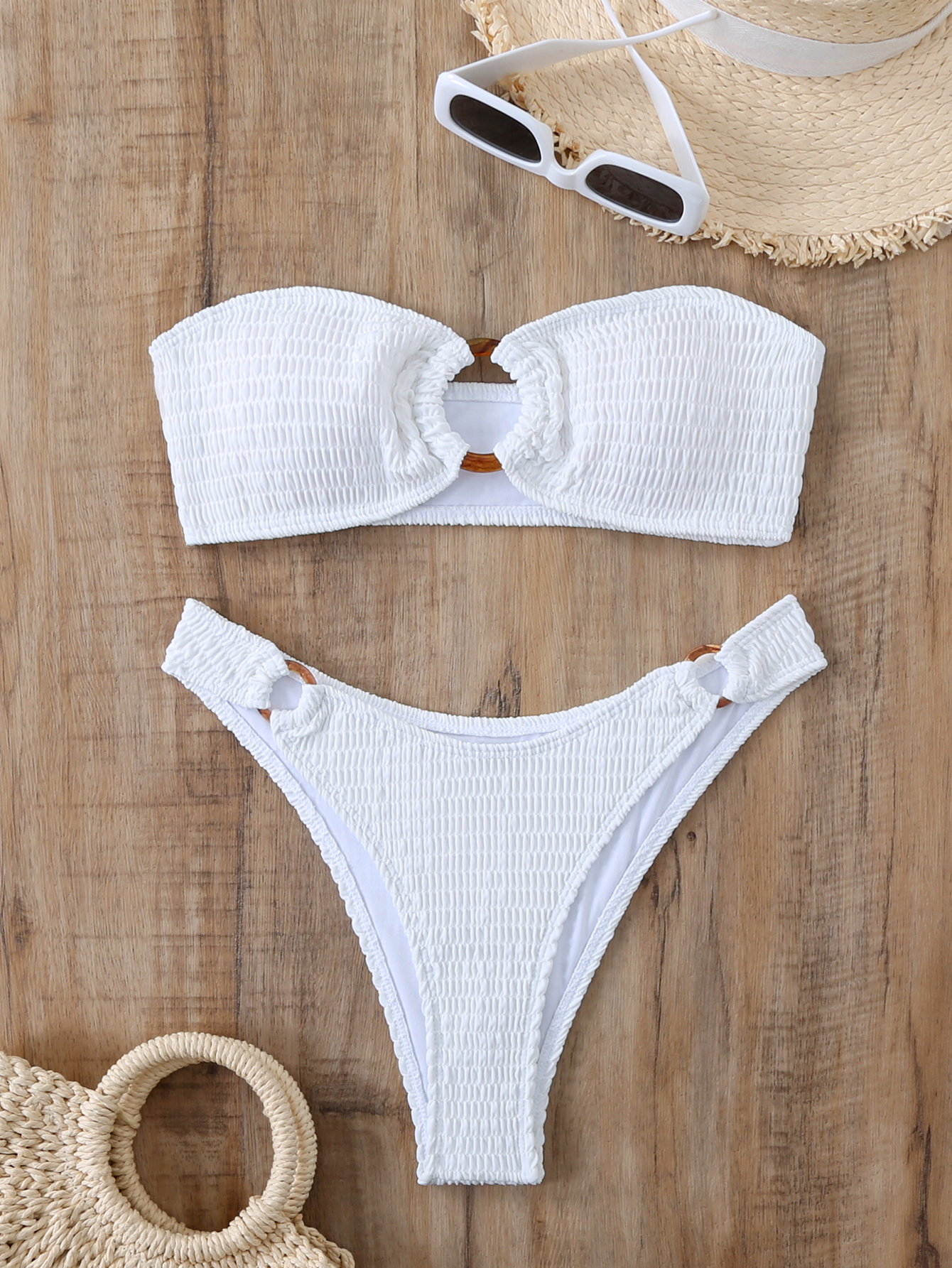 2025 High Cut Bikinis Ring Link Bandeau Swimsuit Women Solid Swimwear Female Bathers Bathing Swimming Swim Suit Beachwear
