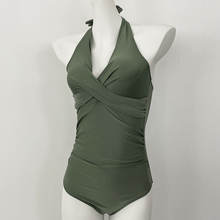 2025 High Waist Bathing Suit Beachwear Women’s Back-length Halter One-piece Bikini Set Tight Patchwork Swimsuit