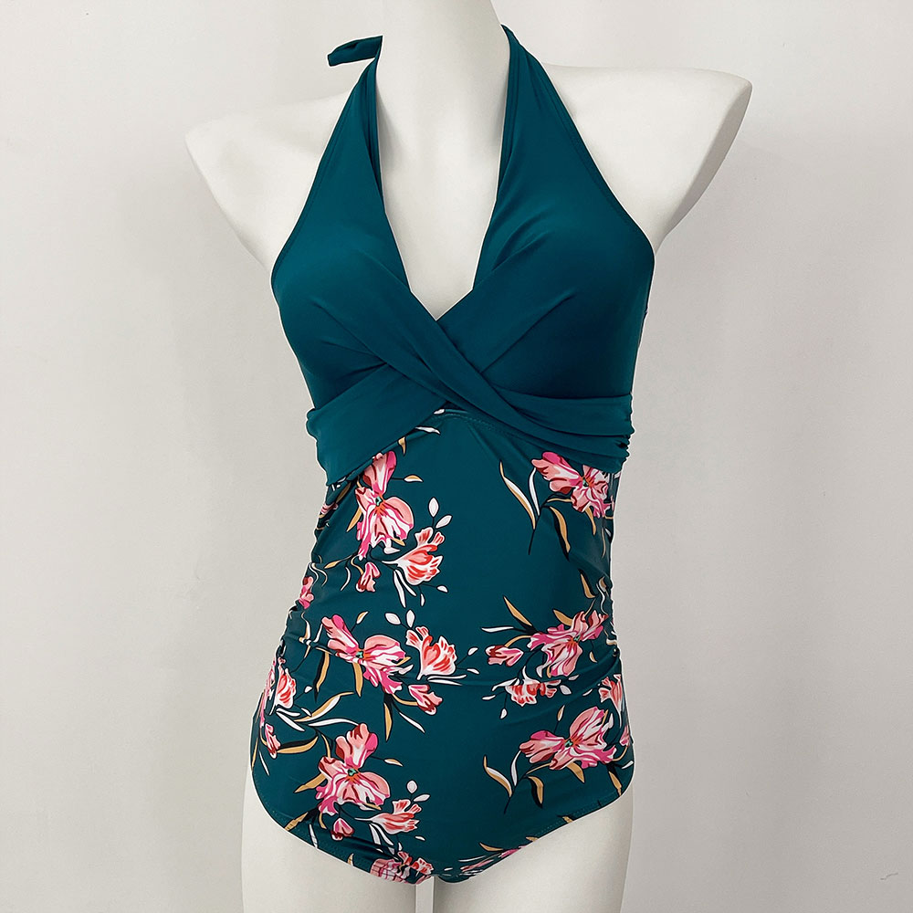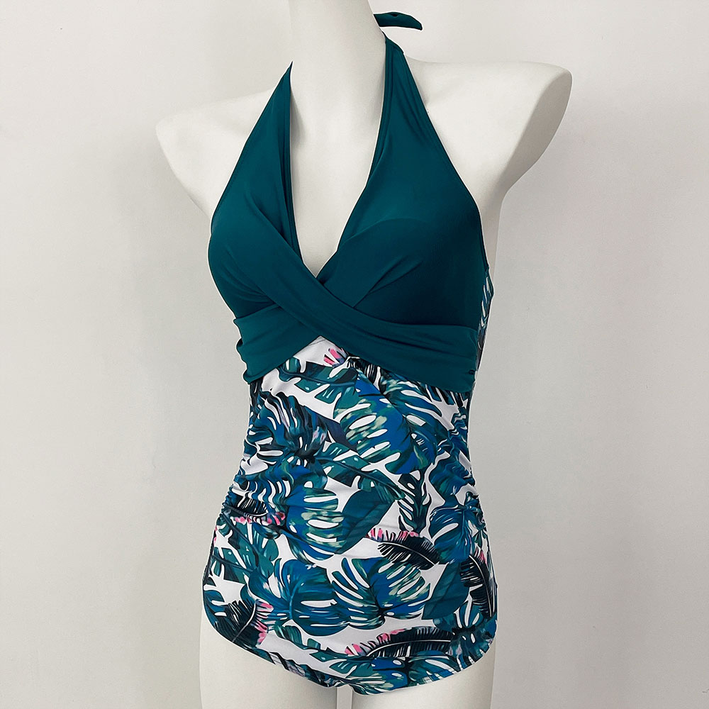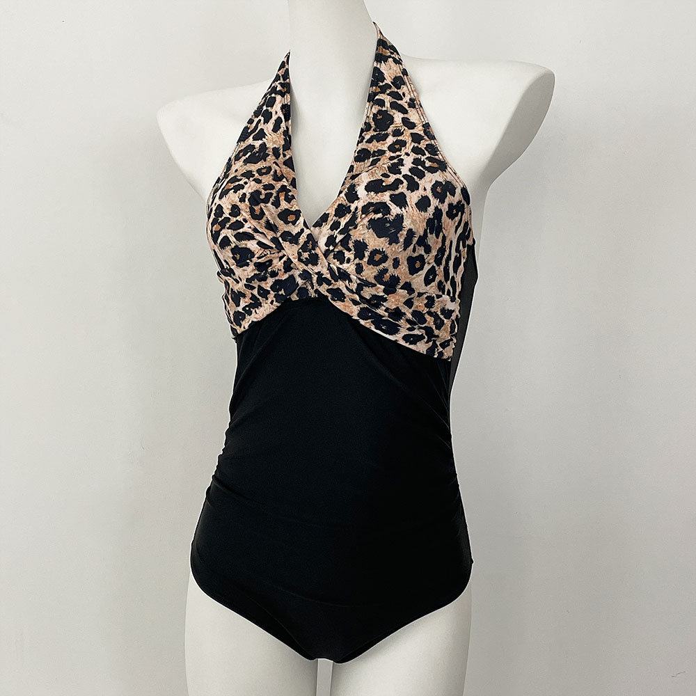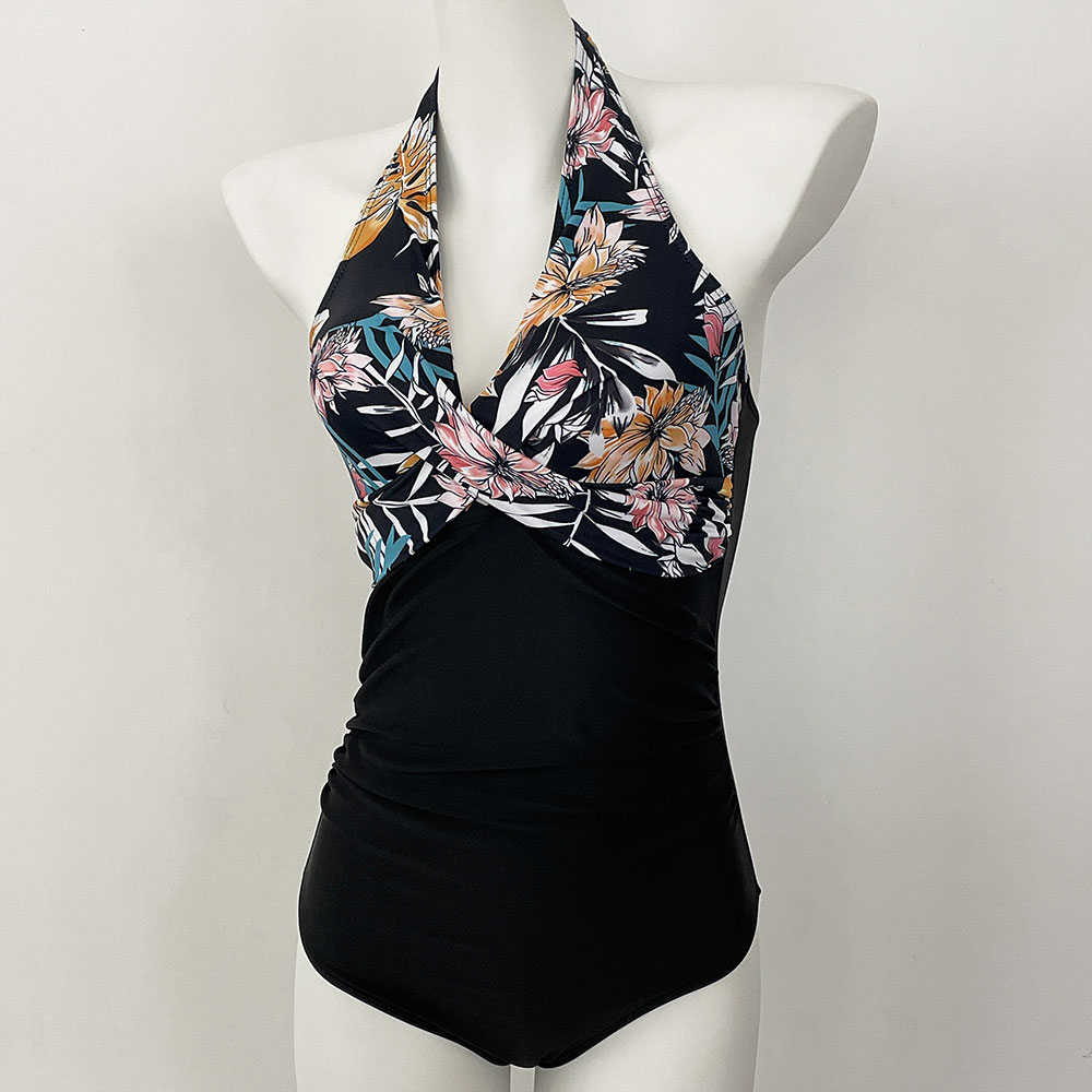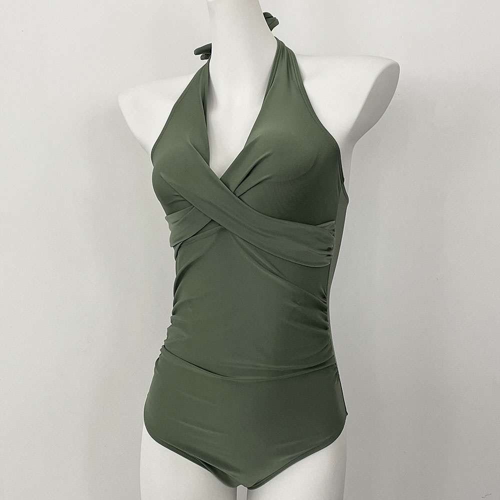 2025 High Waist Bathing Suit Beachwear Women’s Back-length Halter One-piece Bikini Set Tight Patchwork Swimsuit