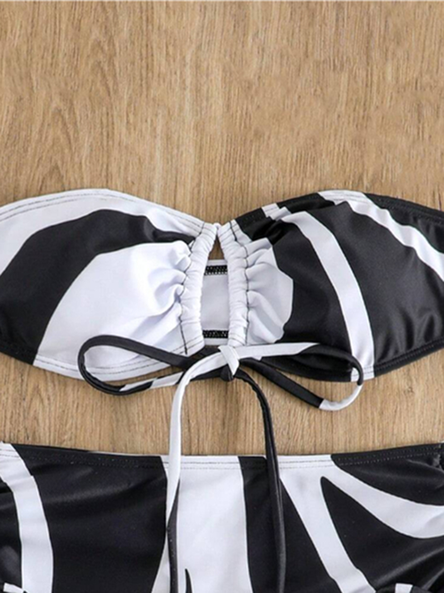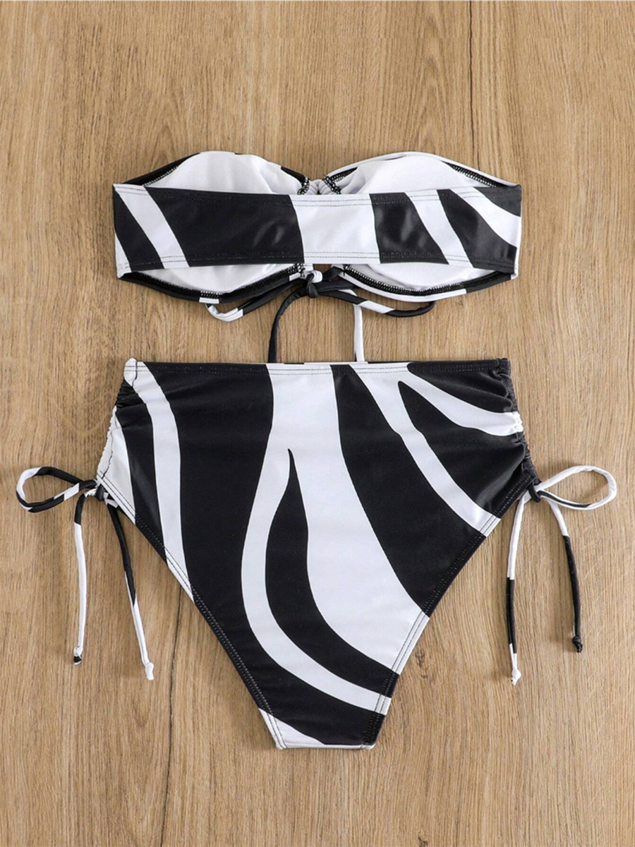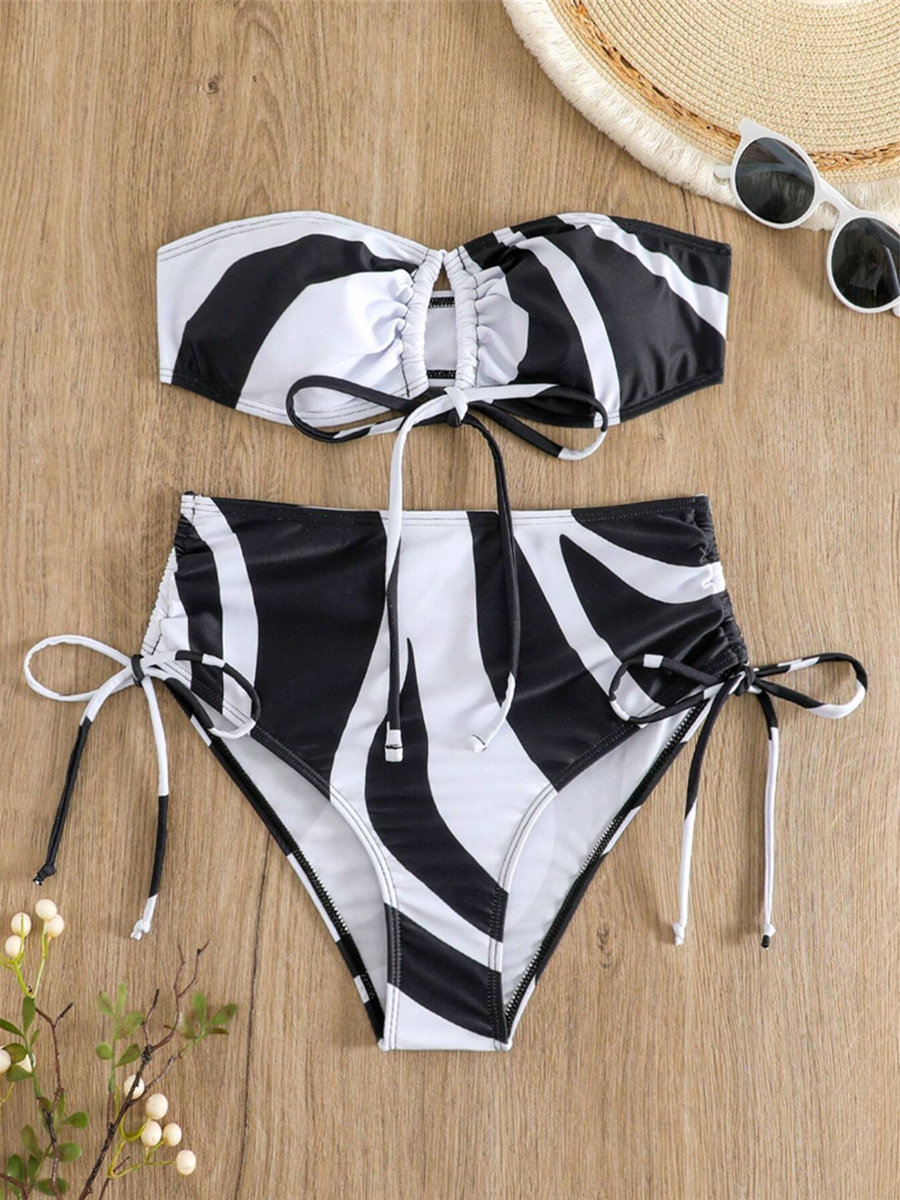 2025 High Waist Bikini Bandeau Drawstring Swimsuit Women Swimwear Female Bathers Bathing Swimming Swim Suit Beachwear