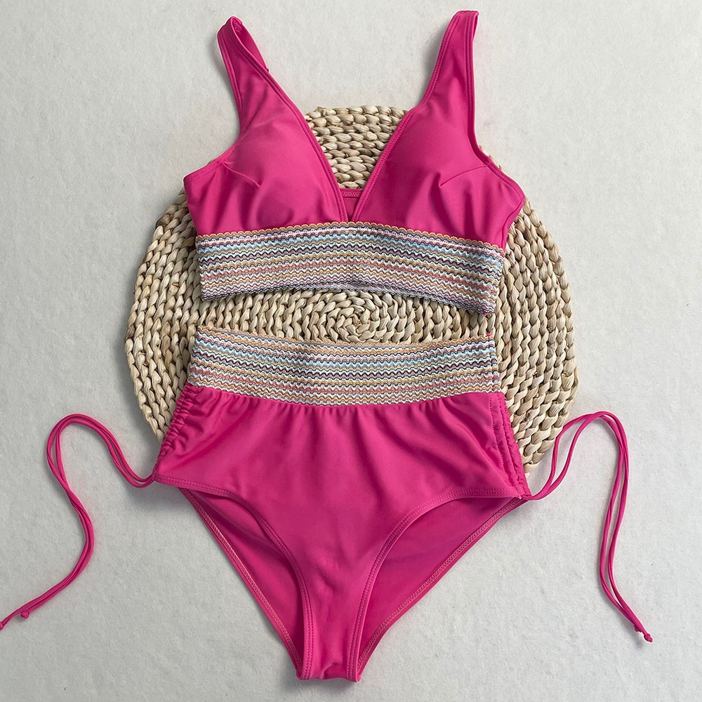 2025 High Waist Patchwork Bikini Set Two-Piece Plus Size Swimwear Women’s Bathing Suit Summer Vacation Beachwear