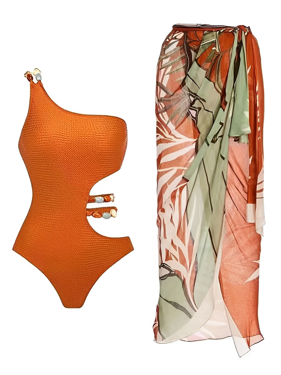 2025 Hollow Swimsuit One Piece & Long Skirt Padded Swimwear Women Bathing Suit Female Swimming Summer Beachwear Bodysuit