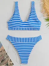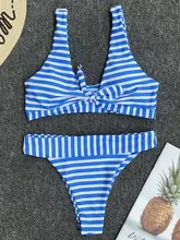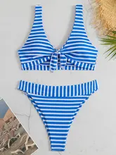 2025 Knotted Striped Bikini Women Swimsuit Female Thong Swimwear Two Pieces Bikini Set Bather Bathing Suit Swim Beach Wear