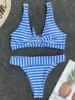 2025 Knotted Striped Bikini Women Swimsuit Female Thong Swimwear Two Pieces Bikini Set Bather Bathing Suit Swim Beach Wear