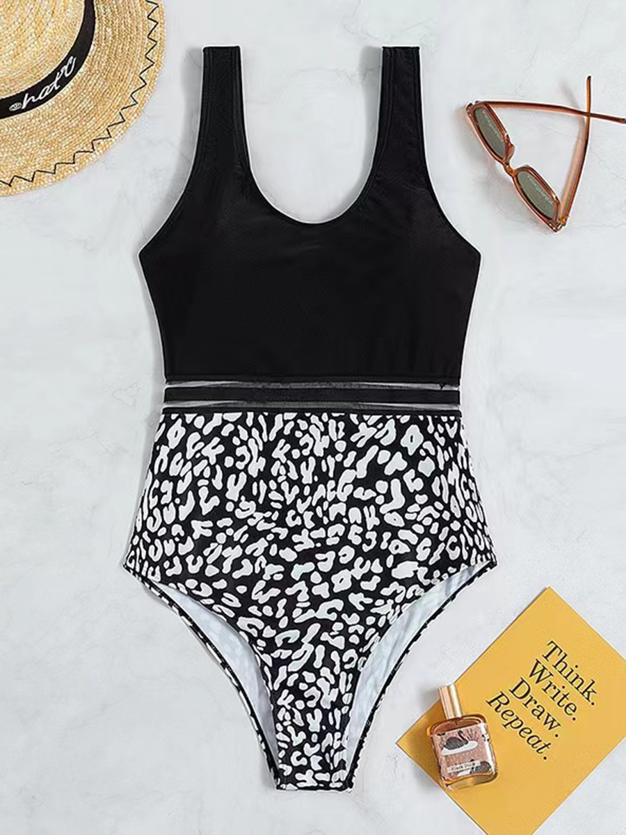 2025 Leopard Swimsuit One Piece Hollow Out Swimwear Women Bathing Swim Suit Padded Beachwear Swimming Summer