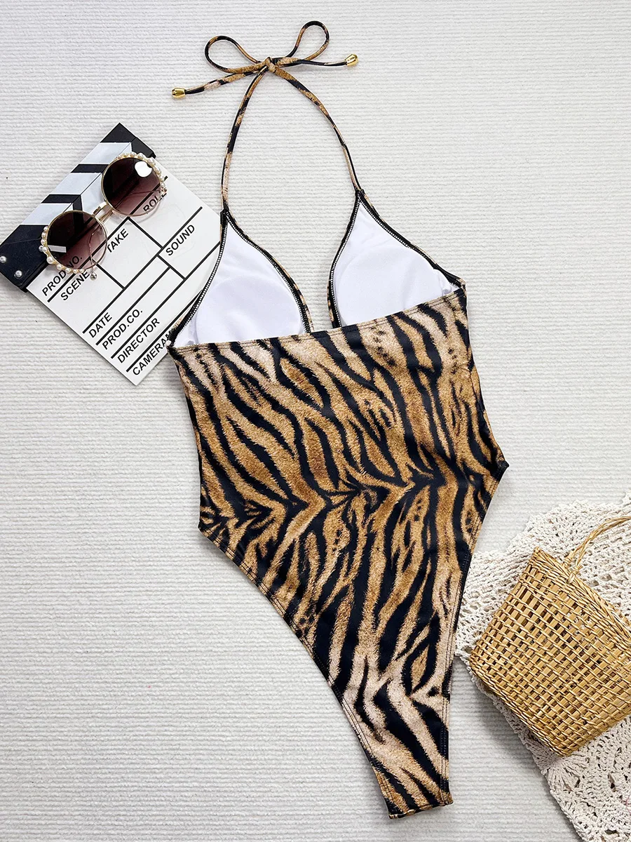 2025 Leopard V Neck Lace Up Full Back High Cut Leg Women Swimwear One Piece Swimsuit Female Bather Bathing Suit Swim Bodysuit