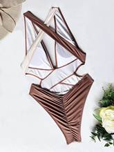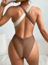 2025 Monokini Cut-out One Piece Swimsuit Solid Back Cross Swimwear Women Bathing Suit Female Swimming Summer Beachwear Bodysuit