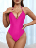 2025 Padded Backless Swimsuit One Piece Solid V-neck Swimwear Women Bathing Swimming Swim Suit Female Beachwear Bodysuit