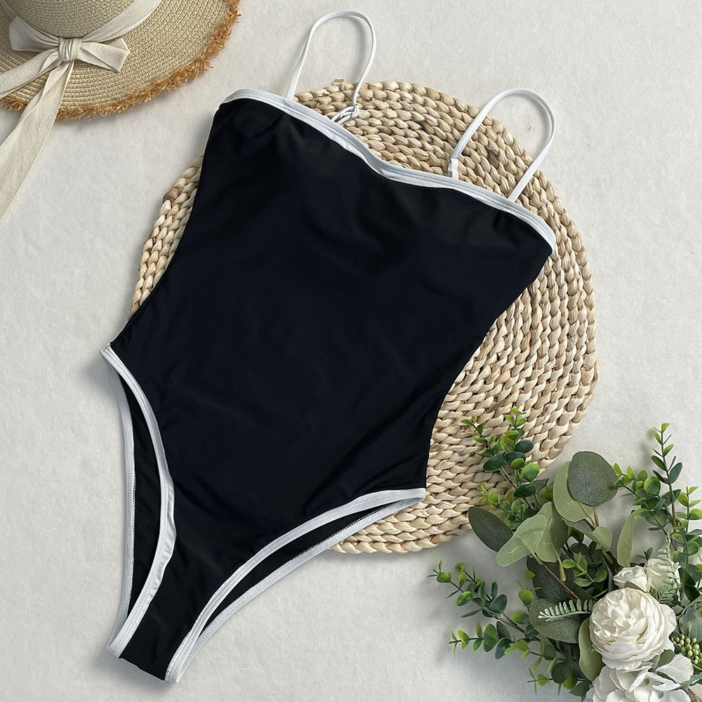 2025 Patchwork One-piece Swimsuit Solid Tight Strap Bikini Set Adjustable Women’s Bathing Suit Beachwear