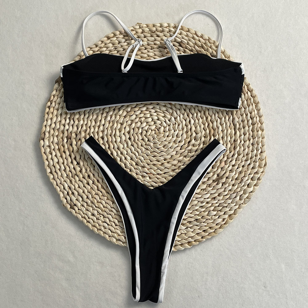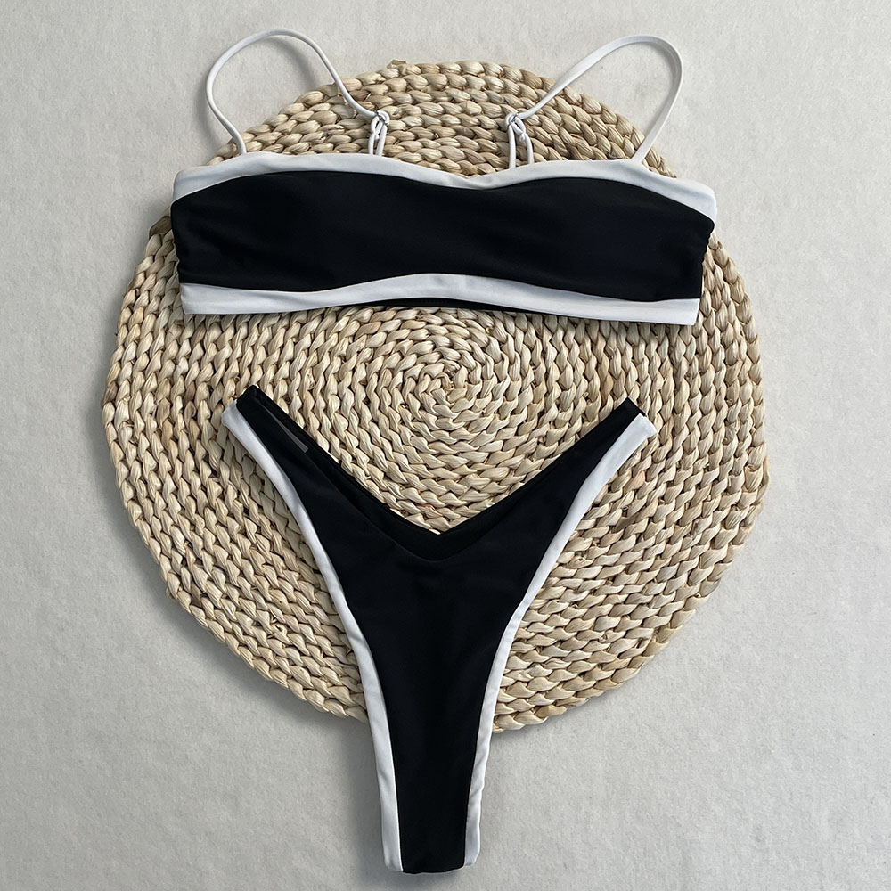 2025 Patchwork Two-Piece Bikini Set High Waist Thong Swimwear Women’s Bathing Suit Summer Vacation Beachwear