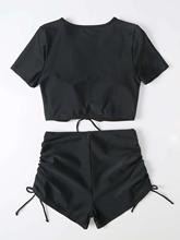 2025 Plain Drawstring Two Pieces Women Swimsuit Solid Swimwear Female Bathers Bathing Swimming Suit Summer Beachwear