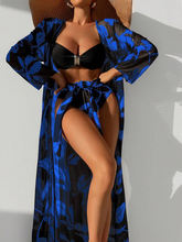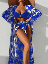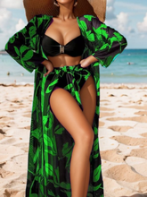 2025 Print 3 Pieces High Waist Bikini & Long Sleeve Kimono Swimsuit Women Swimwear Female Bathers Bathing Swimming Swim Suit