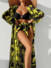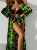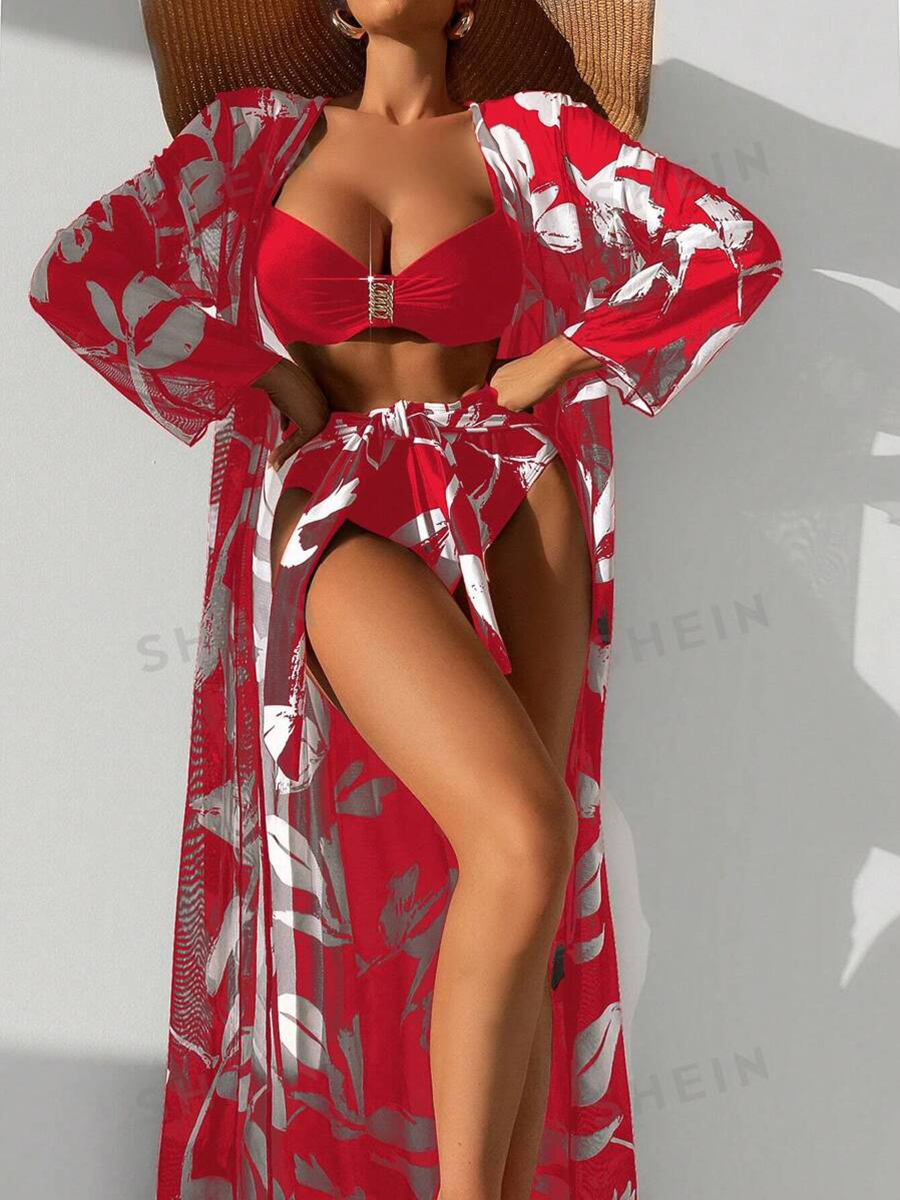 2025 Print 3 Pieces High Waist Bikini & Long Sleeve Kimono Swimsuit Women Swimwear Female Bathers Bathing Swimming Swim Suit